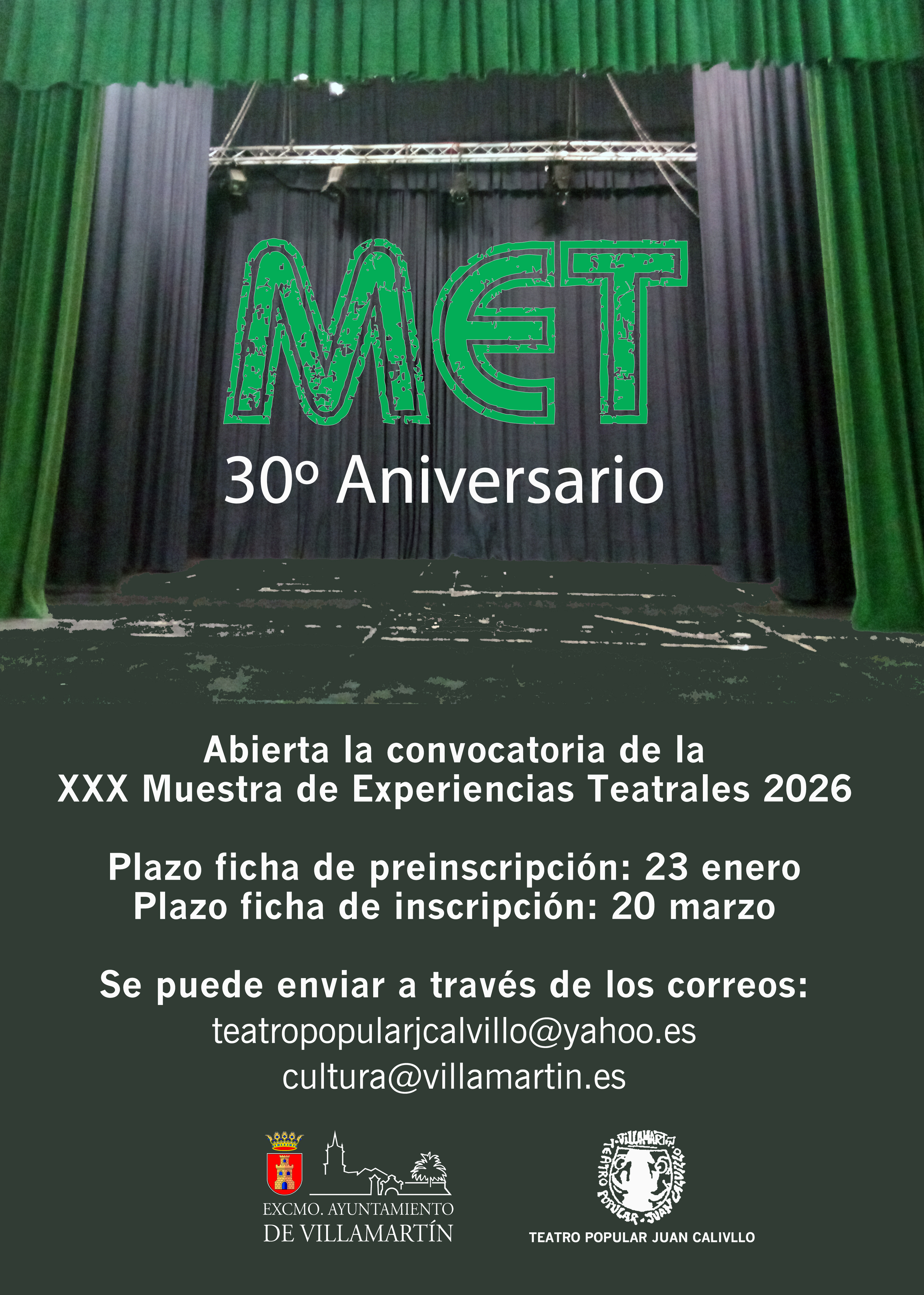 Tras la convocatoria de la XXX Muestra de Experiencias Teatrales 2026, y como cada año, desde su primera edición, la MET, se regirá por las siguientes bases: