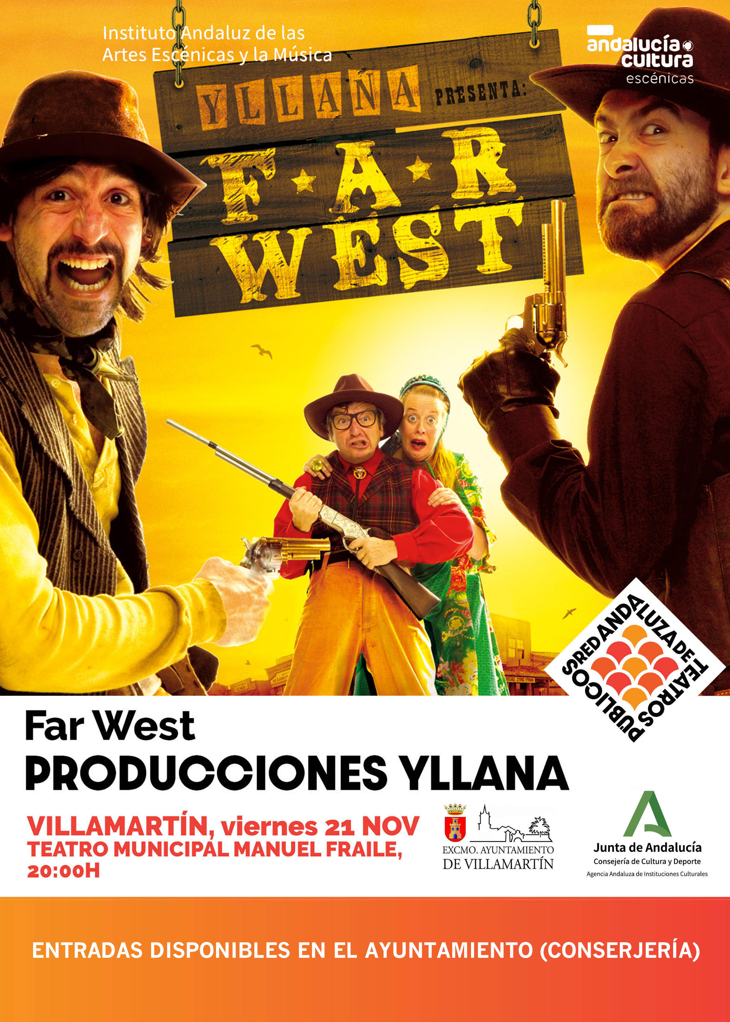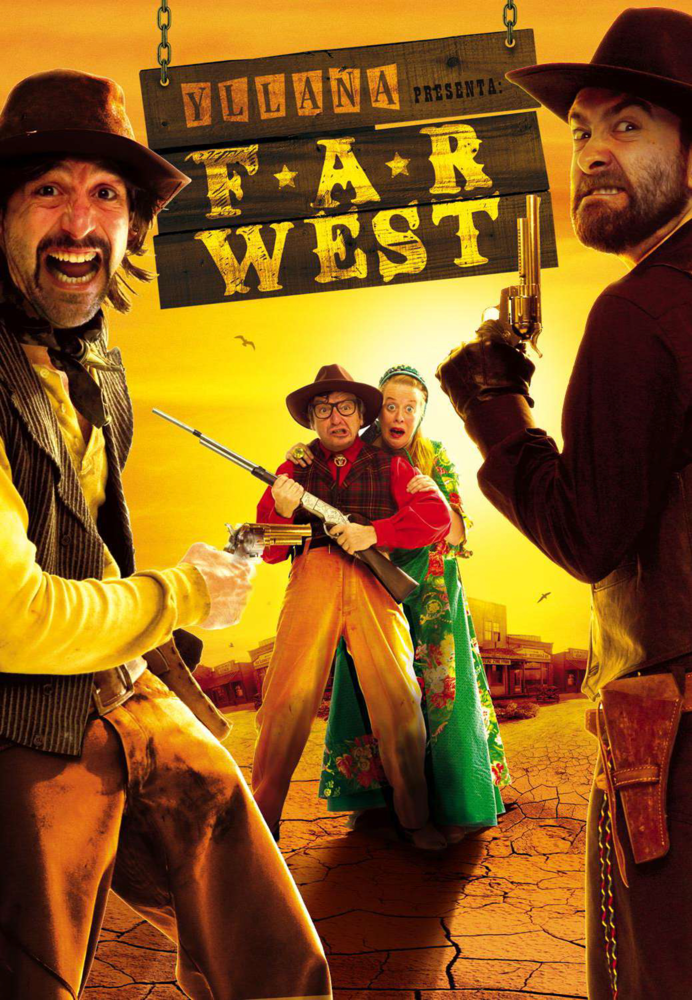 Bienvenidos a “Far West”, la primera incursión de la compañía Yllana en el género del western. A través de la epopeya de nuestros antihéroes, nos adentraremos en un mundo salvaje y sin ley; visitaremos tribus indias, cantinas de mala muerte, desiertos llenos de peligros, duelos al sol, grandes persecuciones y, como en todo buen western, acción, mucha acción.