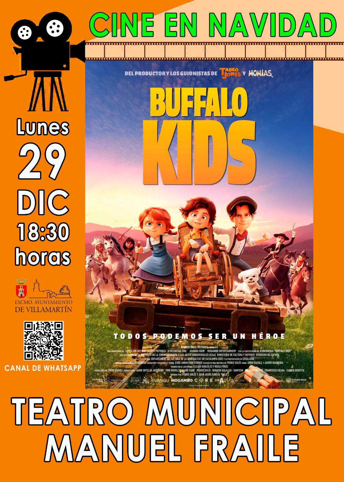 El lunes 29 de diciembre, a las 18:30 horas, seguimos celebrando la Navidad con una película llena de aventura, diversión y compañerismo que encantará a pequeños y mayores, “Buffalo Kids”. Acompaña a sus jóvenes protagonistas en un viaje emocionante por el lejano Oeste, donde la amistad, el coraje y el trabajo en equipo serán esenciales para superar cada desafío.