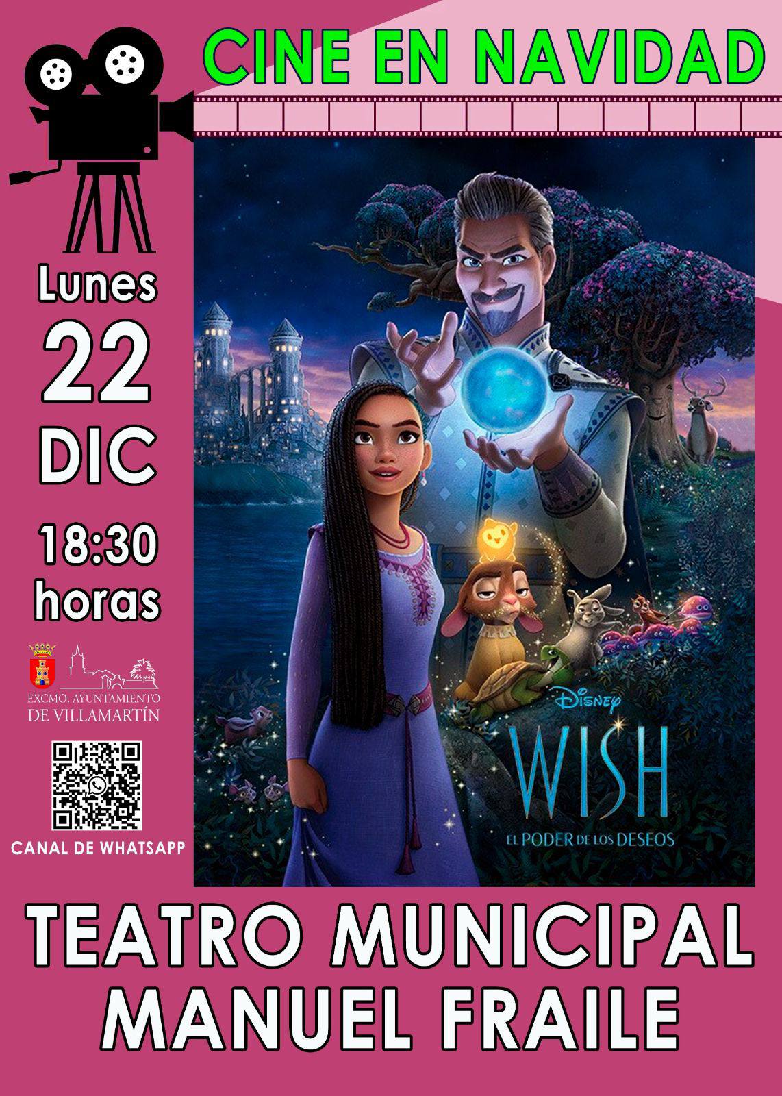 El lunes 22 de diciembre, a las 18:30 horas, “Wish: El poder de los deseos”, una encantadora película musical y animada ideal para todas las edades. Acompaña a Asha en una aventura mágica llena de estrellas, deseos y amistad en el maravilloso Reino de Rosas. Una historia que nos recuerda el valor de soñar y luchar por lo que realmente importa.
