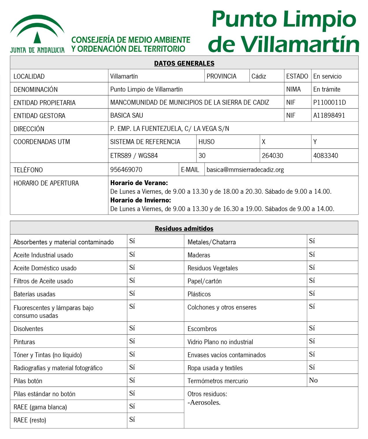 - Atención al público: días laborables de 09:00 a 14:00 h.