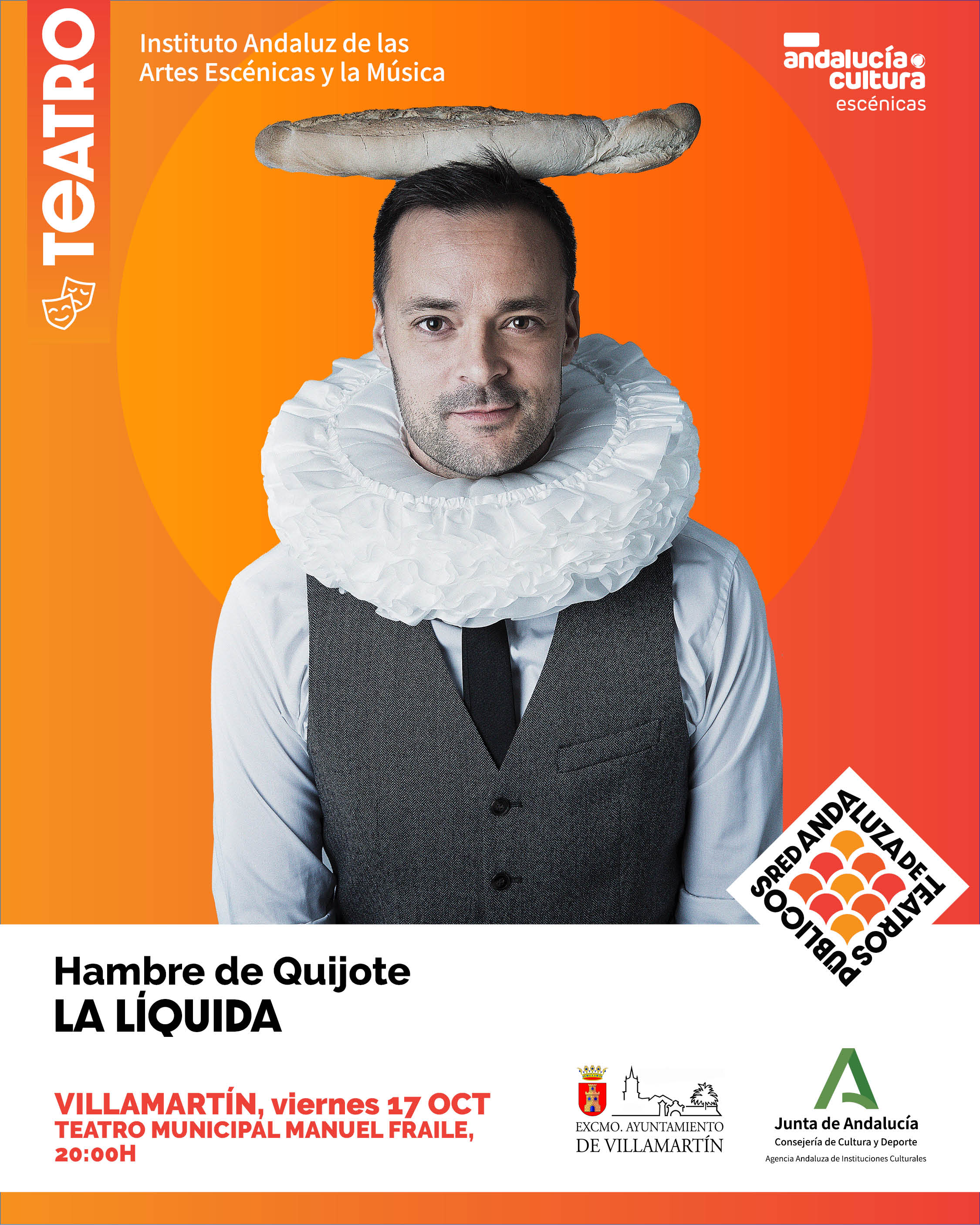 El próximo viernes 17 de octubre, dentro de la programación del Otoño Cultural 2025, vuelve La Líquida Teatro, compañía del actor David García-Intriago (Águila Roja, Acacias 38) con el espectáculo “Hambre de Quijote”, que tendrá lugar en el Teatro Municipal Manuel Fraile, a las 20:00 h