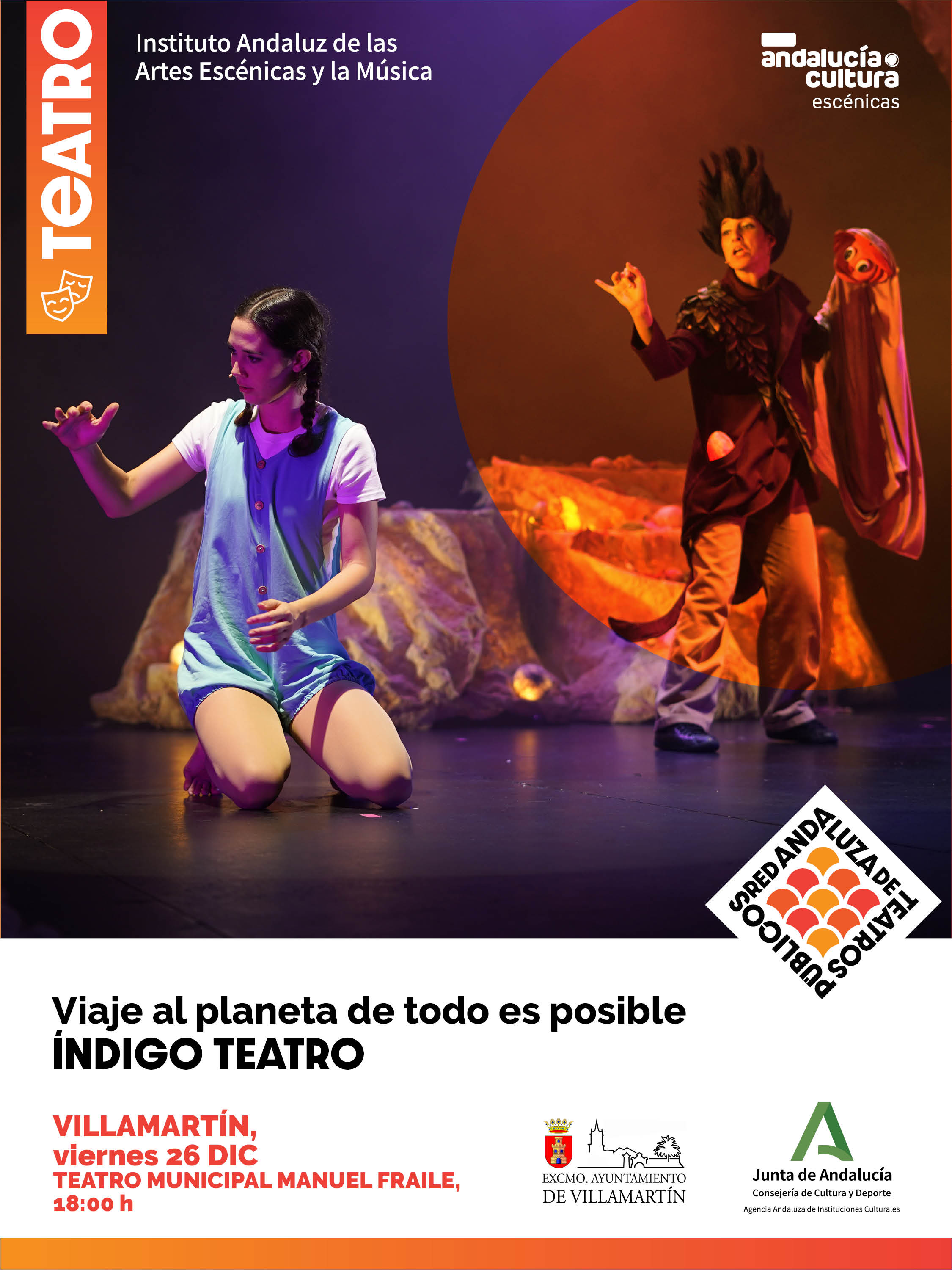 Este viernes 26 de diciembre, dentro de la programación de Navidad que organiza el Ayuntamiento de Villamartín, se presenta "Viaje al planeta de todo es posible", una obra de teatro familiar que propone un viaje al interior, donde Alma, la protagonista de nuestra historia, descubrirá su fortaleza y capacidad de superación. Alma, es una de tantas niñas que sufre bullying en el colegio e iniciará un viaje en el que tendrá que afrontar sus miedos, sus inseguridades y sus emociones.