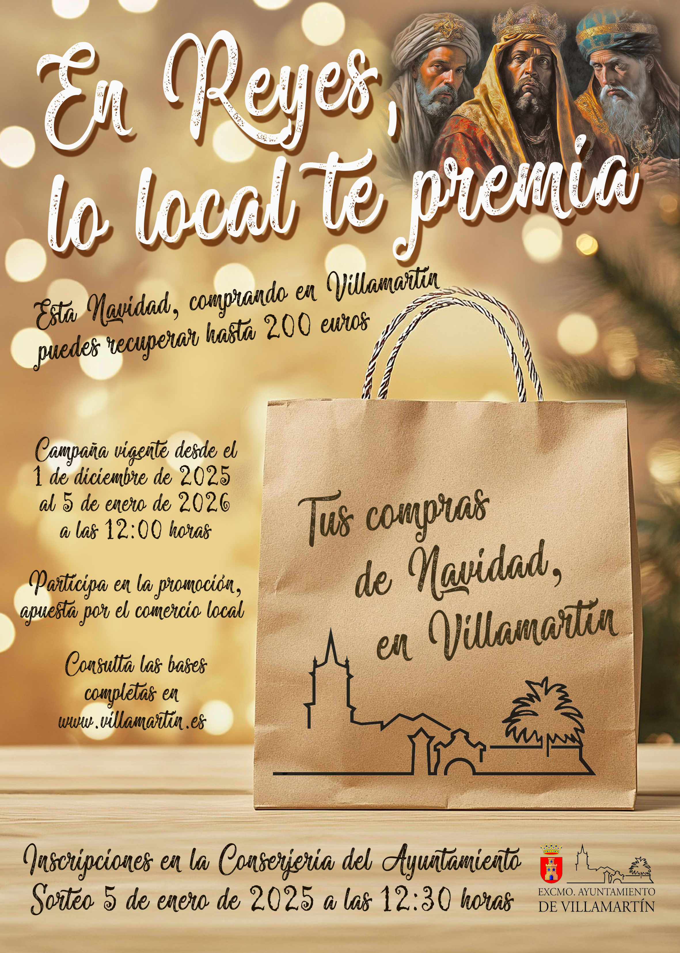 El Ayuntamiento reembolsará hasta 200 € de las compras realizadas entre el 1 de diciembre de 2025 y el 5 de enero de 2026, en comercios de la localidad. Habrá cinco ganadores, que se anunciarán el 5 de enero a las 12:30 h.