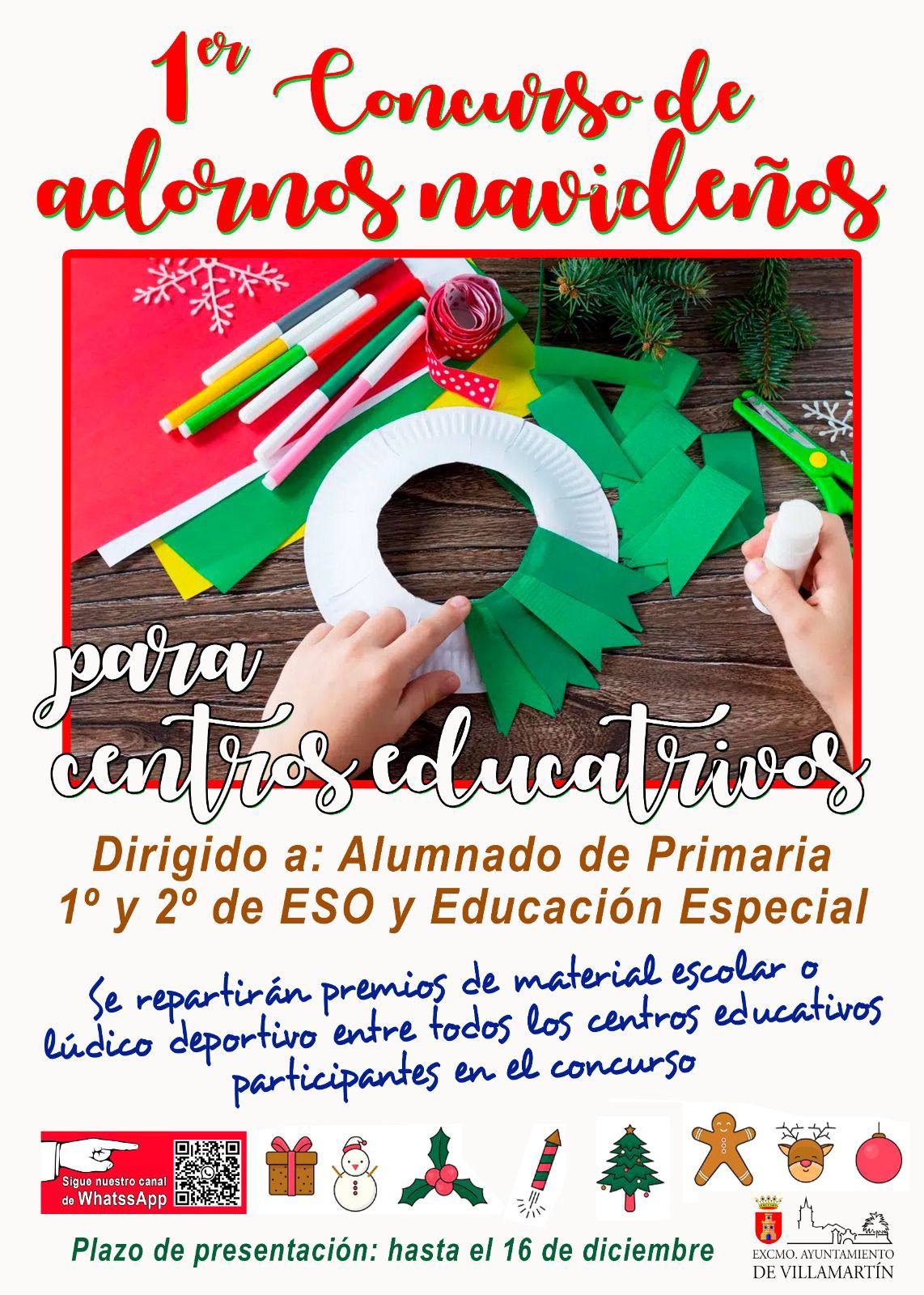 Por un lado, se ha convocado el 1º Concurso de Adornos Navideños Escolar, dirigido al alumnado de los centros educativos con el objetivo de fomentar la creatividad artística y el espíritu navideño entre los niños y niñas del municipio. Se podrá optar a varios premios valorados en 30 € para material lúdico-deportivo canjeable en cualquier comercio local.
