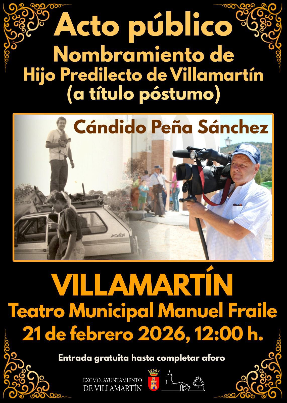 Este sábado 21 de febrero se celebra el acto de nombramiento como Hijo Predilecto a título póstumo de Cándido Peña Sánchez. Un acto cargado de emoción, memoria y reconocimiento, en el que el Ayuntamiento de Villamartín rendirá homenaje a su legado y a su compromiso con nuestro pueblo.