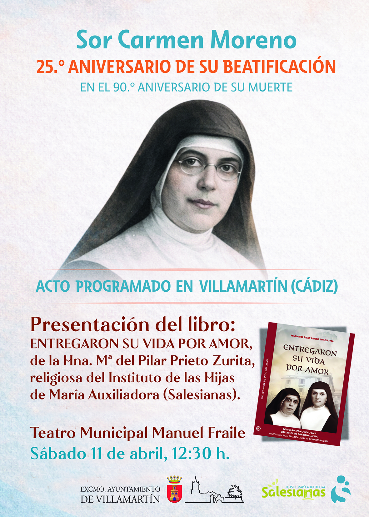 Este sábado a las 12:30 h. se presenta el libro “Entregaron su vida por amor”, de la Hermana Mª Pilar Prieto Zurita, una obra que recorre la vida de la villamartinense Sor Carmen Moreno Benítez.